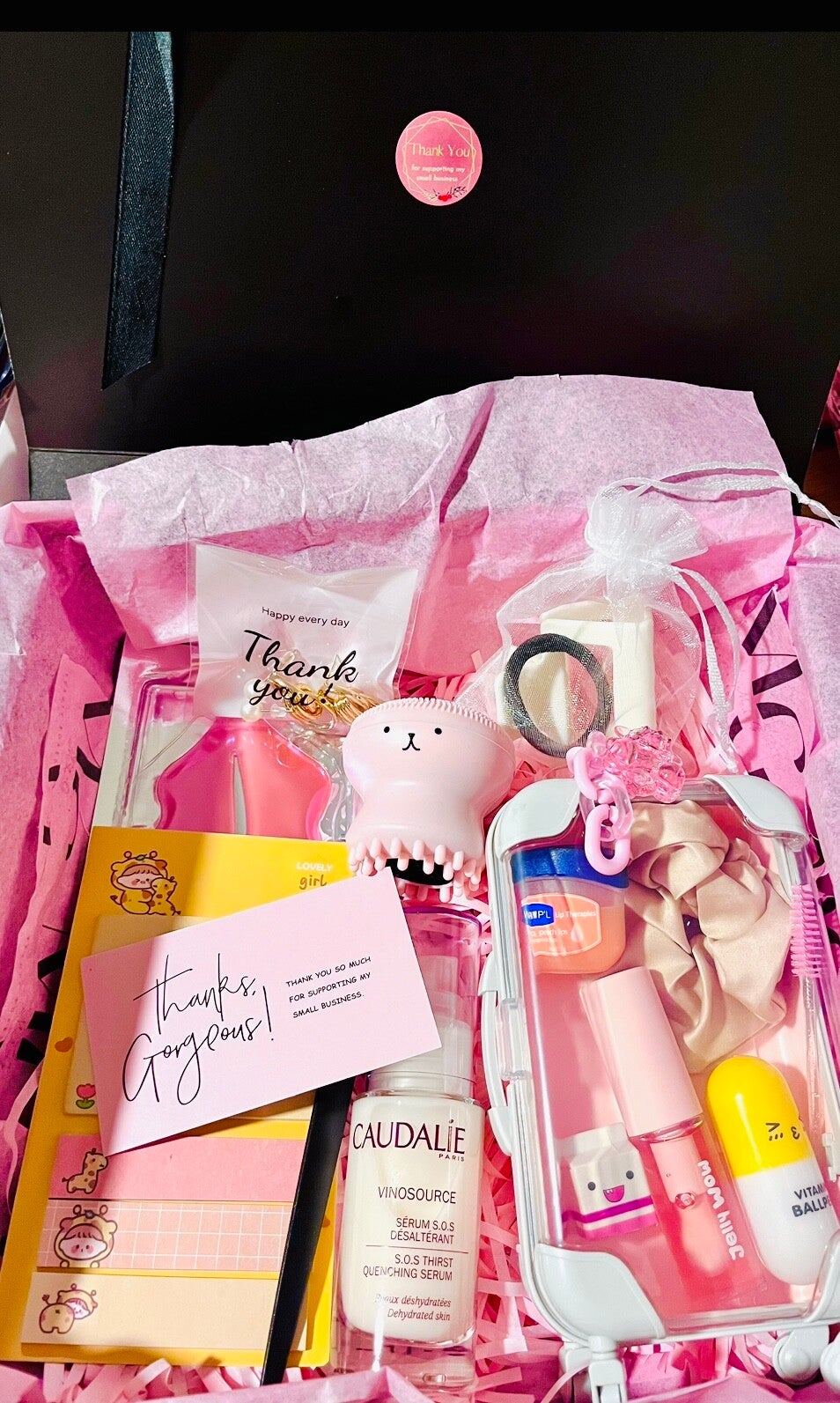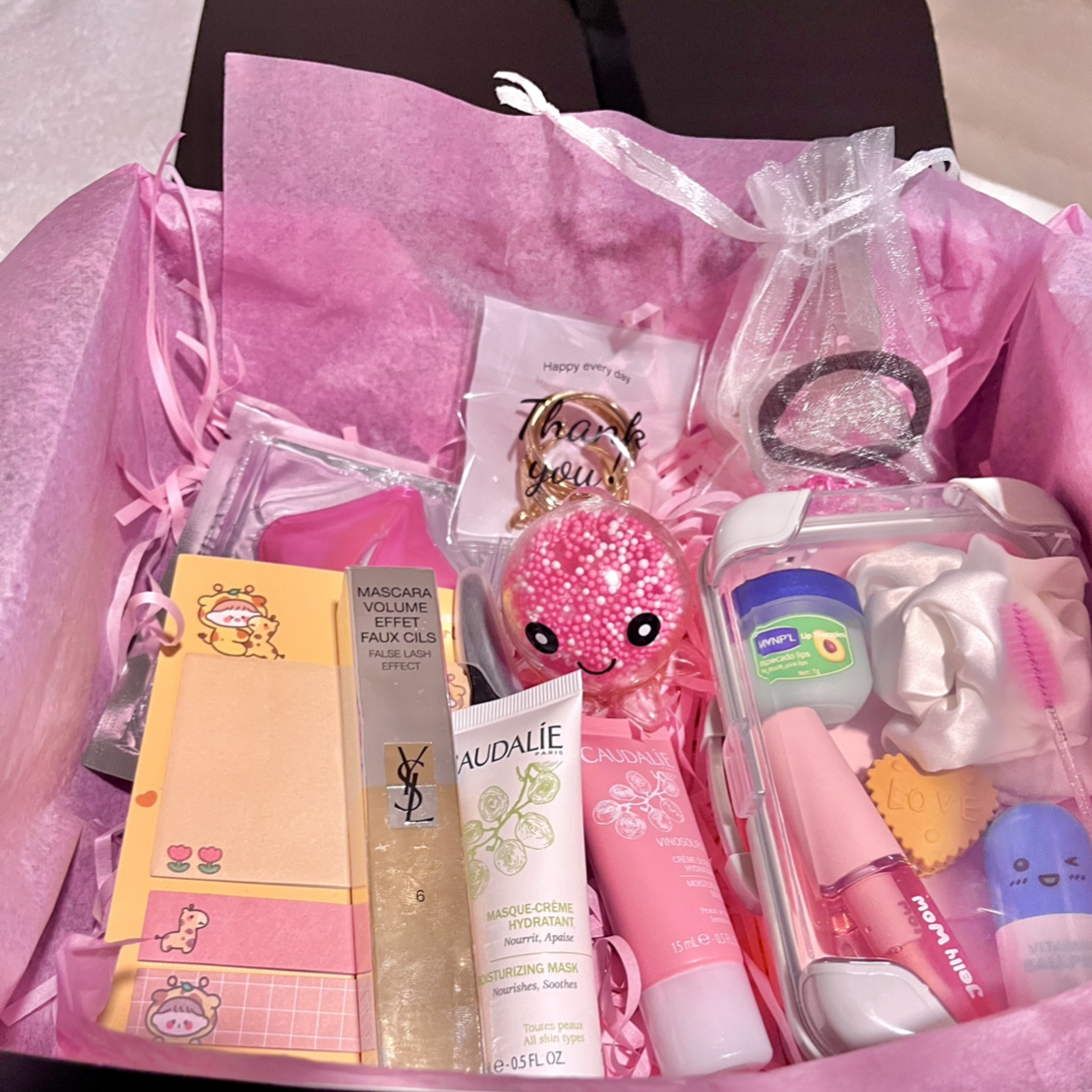 Take your beaty to a higher level with our gift box. It's full of trending beauty products. Perfect to offer. Surprises in each gift box. Find make up, skin care, jewellery, hair accessories and beauty accessories.You can choose if you want the Juicy BBL lip filler gel or not.